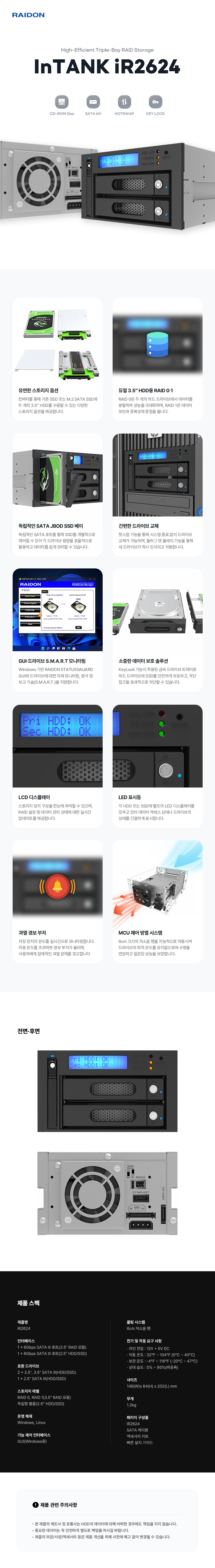 재고 미보유 / 하드미포함 / 1 x 2.5", 2 x 2.5"-3.5" SATA III HDD&SSD / RAID 0, 1, 독립볼륨 / GUI 소프트웨어 제공