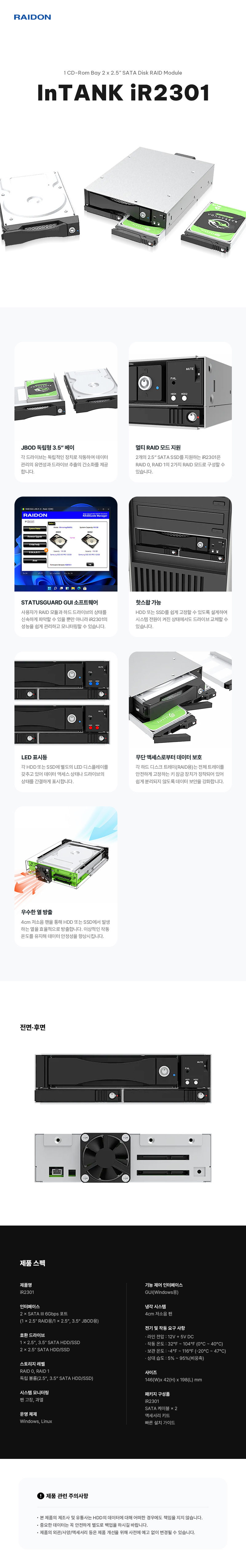 재고 미보유 / 하드미포함 / 2 x 2.5", 1 x 2.5"-3.5" SATA HDD&SSD / RAID 0, 1, 독립 볼륨