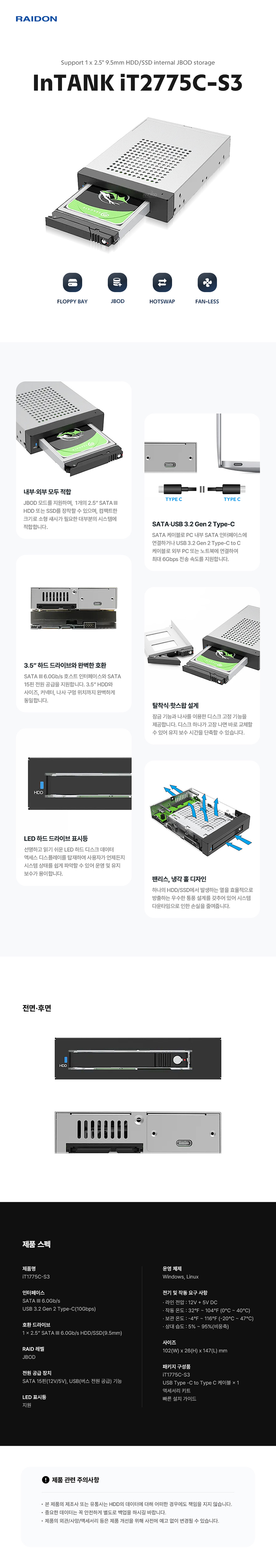 재고 미보유 / 하드미포함 / 1 x 2.5" SATA III HDD&SSD / USB3.2 Gen 2 Type-C / JBOD