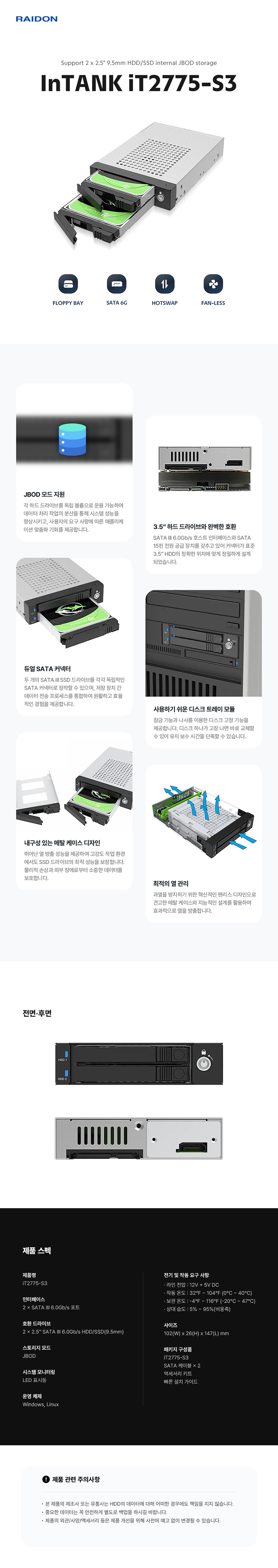 재고 미보유 / 하드미포함 / 2 x 2.5" SATA III HDD&SSD / 독립 볼륨(JBOD) / 핫스왑, 플러그 앤 플레이 지원