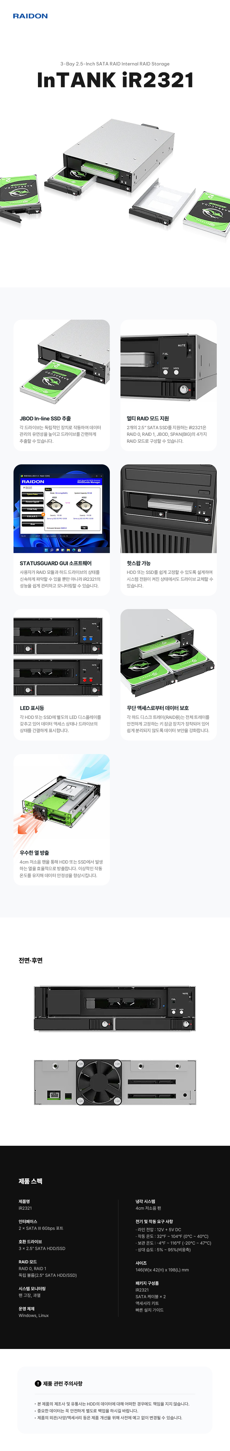 재고 미보유 / 하드미포함 / 3 x 2.5" SATA HDD&SSD / RAID 0, 1 + 독립 볼륨 / 핫스왑 & 플러그 앤 플레이