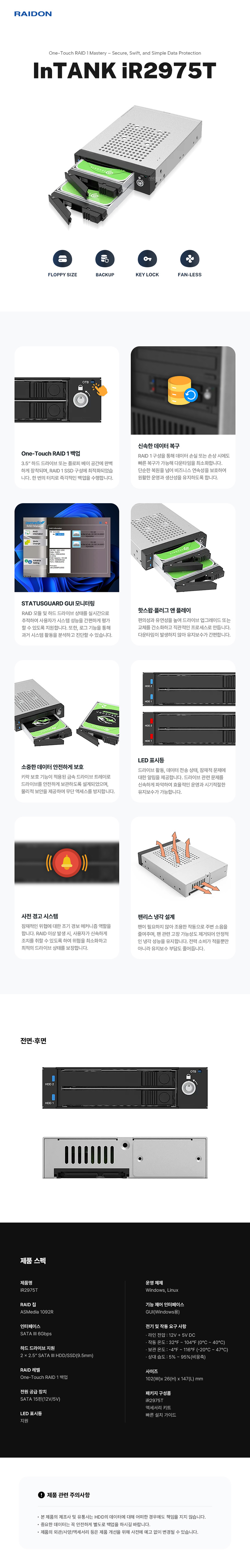 재고 미보유 / 하드미포함 / 2 x 2.5" SATA III HDD&SSD / ASMedia 1092R / 원터치 RAID 1 백업