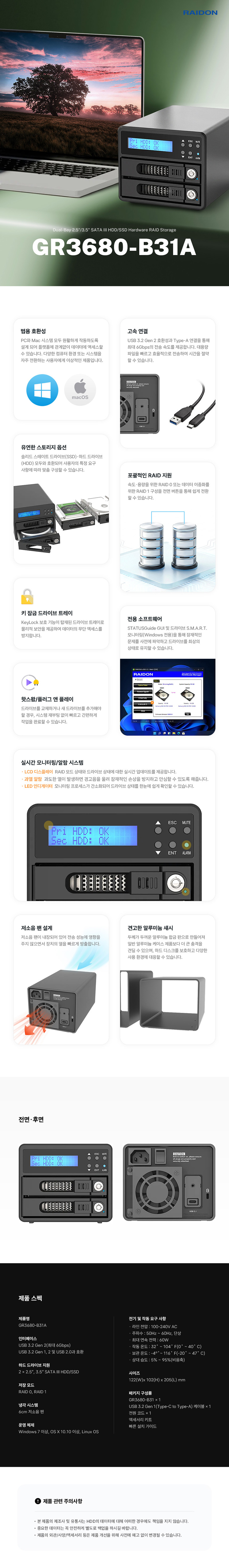 재고 미보유 / 하드미포함 / 2 x 2.5, 3.5" SATA III SSD&HDD / USB3.2 Gen 2(USB C to A) / RAID 0, RAID 1