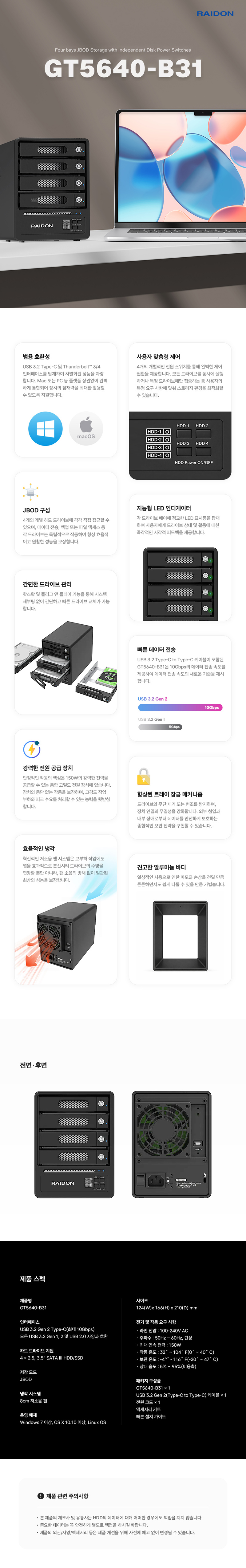 재고 미보유 / 하드미포함 / 4 x 2.5, 3.5" SATA III SSD&HDD / USB3.2 Gen 2(USB-C to C) / JBOD